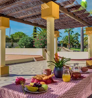 A Quinta Amoreira é mais do que um alojamento local — é um lugar sagrado no coração do Algarve. Aqui, o tempo desacelera, o corpo relaxa e a alma desperta. A natureza envolve-nos com a sua força silenciosa: ao amanhecer e ao entardecer, o céu pinta-se com luzes suaves, enquanto os papagaios anunciam um novo ciclo.
