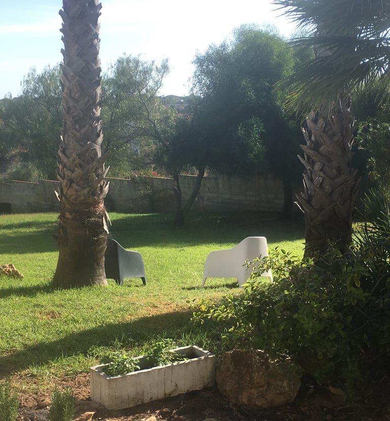 Livres inspirants, coin repos à l’ombre, et accès libre aux zones extérieures.